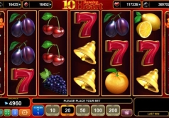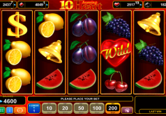 10 Burning Heart has 5 reels and 10 paylines. The RTP of the game is 96%. The symbols look quite attractive and delicious : red cherries, lemons, plums, watermelon, grapes. There are also classical sevens, bells and a big heart which is a wild symbol. The wild symbol is not only the best-looking but the generous one as well. Star of purple color and dollar sign are the scatters here. Winning combinations will give you big prizes if you have luck to catch them.