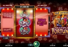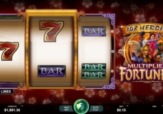 108 Heroes Multiplier Fortunes has 3 reels, 3 rows and 9 pay-lines. The background looks really beautiful and full of pink flowers. The choice of colors is a real pleasure for eyes. Much attention was drawn to the details, even the frames are made in wonderful ornament. There are bright and colorful symbols: bars, sevens and the multiplier symbols with brave heroes on them. There are 4 multiplier icons :2x, 3x, 4x, 5x. They are classical ones but have a nice design. The interface is rather convenient, the total win you can see on the screen. You can also use an Autoplay button which can make the process of the play more relaxing. All in all the animations will definitely impress you and make the game more exciting.