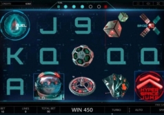 The minimum bet you can make here is 0.09 and the maximum one is 9. So it doesn`t matter what budget you have as you can play with a small amount of money. If you don`t want to risk your money you can play for free. It will help you to familiarize yourself with the rules of the game and think of the tactics before switching to playing for real money if you are ready to do it. The symbols of this amazing game include wild symbol which is an astronaut, card symbols drawn in the original way, ISS, fuel, hyper space jump, dice. The wild symbol can replace all the icons except for the scatter, fuel, hyper space. You will never be bored playing this slot because its features are rather interesting and the game can offer you much.
