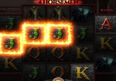 This slot won’t let you feel boredom. The Hell theme may seem strange and unpleasant for some gamblers but actually it is as interesting as it can be. 4 Horsemen is a game with 5 reels and 30 pay lines. The RTP is 94.5% which is not high, so it is a disadvantage. If you want to concentrate on the reels without pressing the button all the time, you can use the Autoplay button. Free spins with multipliers give you lots of chances to get good prizes. The biggest payouts can be earned this way. The coin range varies from 0.01 to 10. So, t doesn`t matter whether your budget is big or small, you can enjoy this game. You can play this game on the go as it has a mobile version. Use your laptop, computer, tablet or smartphone to enjoy this slot. That is why it may be a great way to cope with boredom and entertain yourself while you are waiting for someone or sitting in the lines. The slot can be interesting for people who enjoy retro games and ones who like modern slots as well. The icons are both unique and classic (card symbols) and it turns to be a great combination which is rather pleasant for eyes.