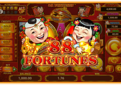 The game has 5 reels, 3 rows and 243 pay-lines. There are both traditional and unique symbols on the reels. They include card symbols, bird, ship, tortoise, gold bars and dollar. 88 Fortunes is an interesting game which has pleasant features. You will never feel boredom playing this slot as it doesn`t stop to give surprises and is rather unpredictable. There is a wild symbol which is represented by Fu Baby . It is the most generous symbol and can replace other icons. There are also free spins which give the opportunity to get more prizes. You can also take part in the bonus round in which you should collect coins and make money.
