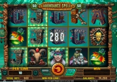 Abundance Spell has 5 reels and 50 pay-lines. The symbols you will see here are original and scary. Skull with a candle on it, bones, female and male shamans, eyeballs in the bottle, mask for rituals, head of the goat, magic potion, voodoo doll are the icons which are presented here. Even the card symbols are made in accordance to the style of the slot. The RTP is 96.78 % which is quite high. If you don’t want to spin the reels manually you can use the Autoplay button. It will help you concentrate on the reels and make the process of the play easier. The main features are Free Spins, wild, scatter and bonus symbol. The bonus game is quite interesting and can give you pleasant prizes. Free spins icon is represented by the woman shaman. Wild symbol is a man shaman, and bonus is a voodoo doll. The minimum bet is 0.01 and the maximum one is 10. So it doesn’t matter what budget you have. If you are not sure that this slot is worth risking money, you can start with playing for free. The demo version won’t give you money, but it will give you skills, experience and confidence. The highest payout is 1,800.00 which is rather generous. High rollers like this slot and try to do their best to get decent prizes.