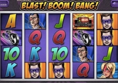 Blast! Boom! Bang! is a game which can be tried for free. If you want to get some skills and experience before risking money, you have a possibility to try the demo version of the slot. You will get positive emotions and experience even if you won’t take any risk. The rules are quite simple. Check the pay table in order to know what symbols are generous and think of the tactics which can lead you to success. On the reels you will see traditional card symbols and illustrations which seem to be taken from comic book. There is a motorbike, brave superheroes in masks both male and female and other interesting symbols which will plunge you into the fantasy world.