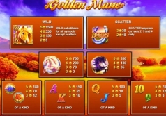 The atmosphere is relaxing and it is a pleasure to play this slot due to the great graphics and good sounds. Golden Mane won’t disappoint players who love stylish games. Beautiful wooden frame of the reels, nice logo, well-drawn symbols and bright colors are things which make this game impressive.
