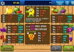 The game has 3 reels and 5 paylines. The graphics is colorful and the symbols are bright and well-drawn. These symbols will make your mouth water, you’d better play when you are full! The animations and sounds are great too. As for the background, it is simple: it is of yellow color and there are illustrations of traditional symbols which are not bright so they won’t distract you. If you love fruits, you will definitely fall in love with Tutti Fruity!